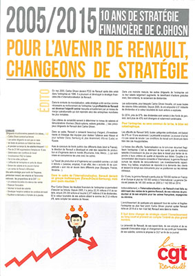 La Coordination Renault a realisé un tract sur le bilan de 10 ans de Carlos Ghosn comme PDG de Renault