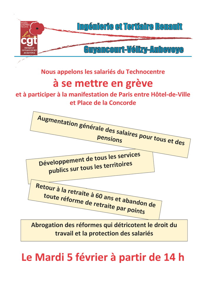 Nous appelons tous les salariés du Technocentre Renault à se mobiliser pour défendre leur conventions collectives